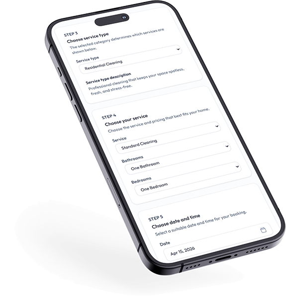 Pick your ZIP code, tell us how many bedrooms and bathrooms you've got, choose a date, and kick back while we handle the rest of your home's needs.